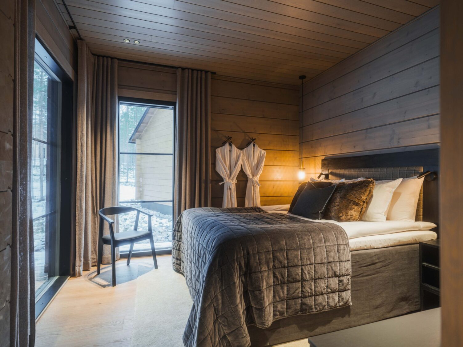 Near a serene river close to Levi, this exquisite villa is a haven of tranquillity and understated luxury. Thoughtfully designed to harmonize with its surroundings, it offers an effortless blend of modern comfort and Nordic warmth. Expansive windows frame the peaceful landscape, filling the living room with natural light and a calming sense of space. Perfect for an indulgent retreat.
