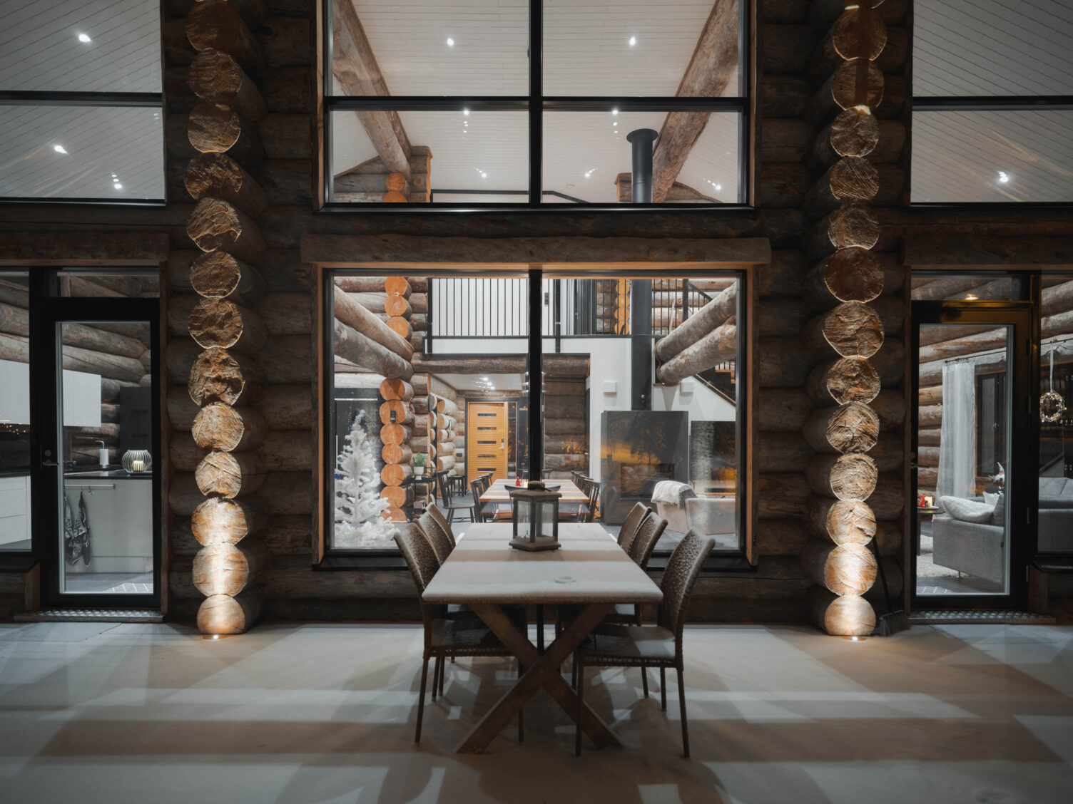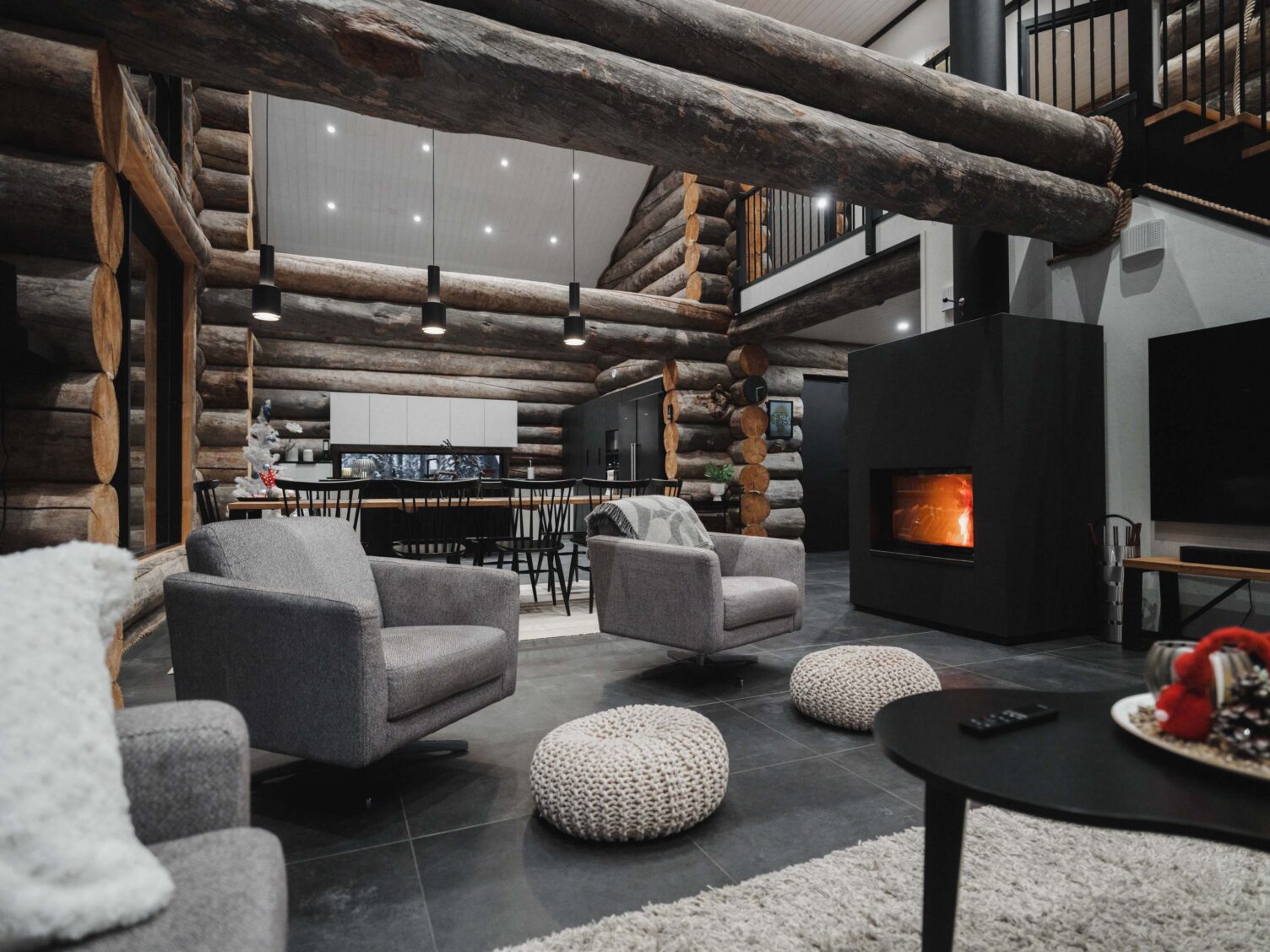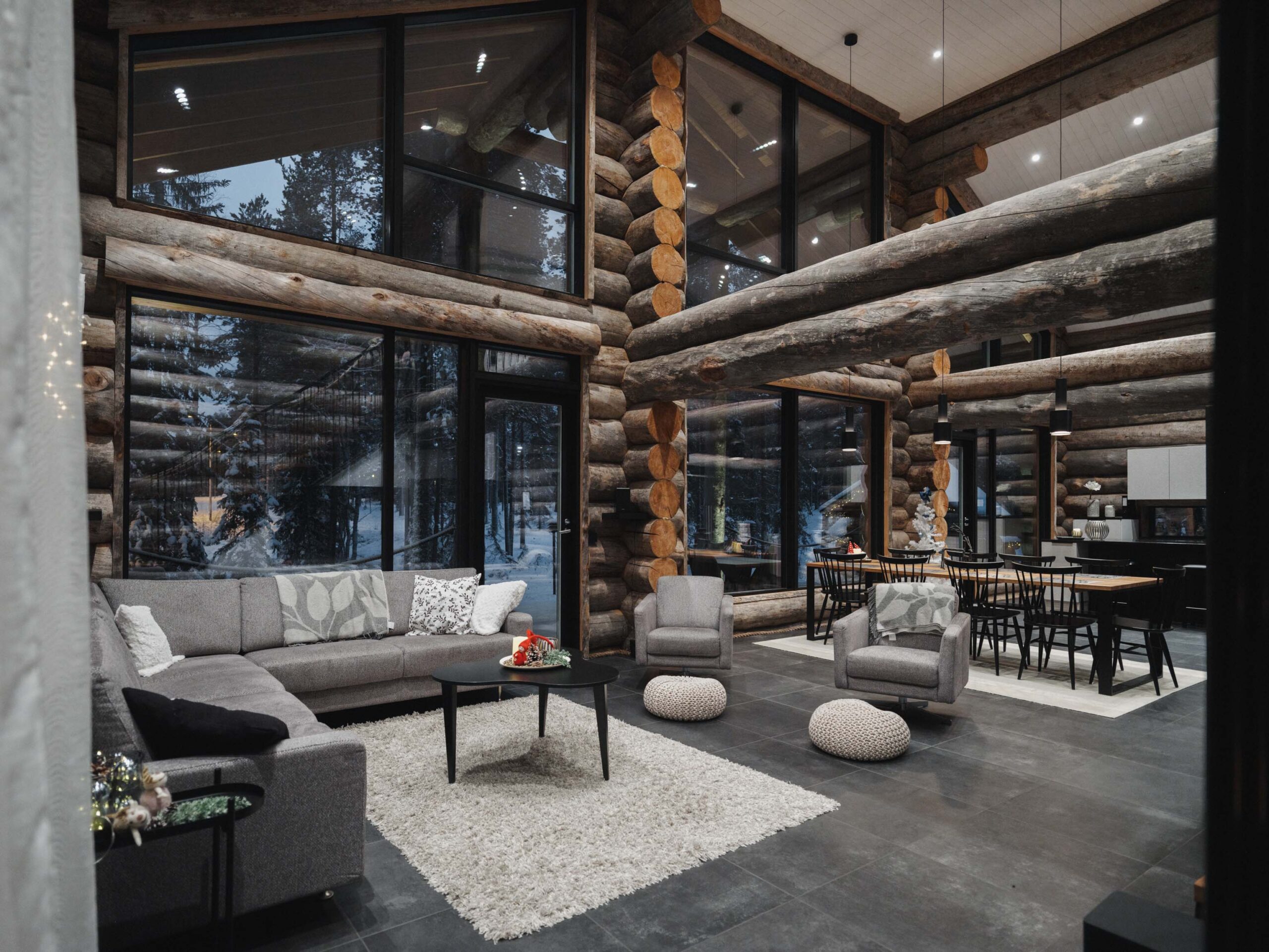 The elegant two-storey Villa Onnela offers a captivating retreat to unwind, reconnect, and create lasting memories in the heart of Lapland. Bathed in natural light and framed by surrounding forest views, the villa comfortably accommodates up to 10 guests. Its modern, elegant interiors provide inviting spaces for shared moments, quiet evenings by the fire, or spontaneous adventures that begin just outside your door.