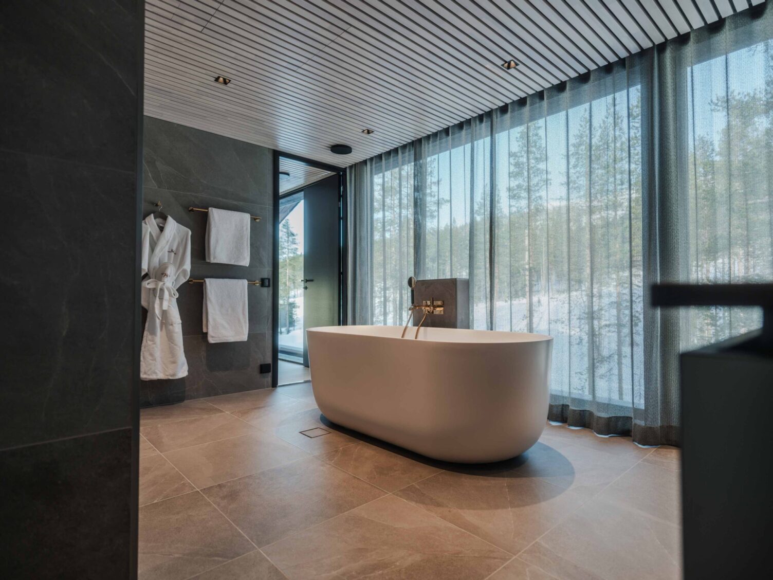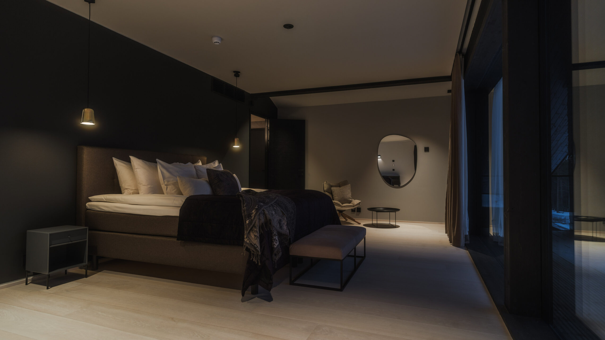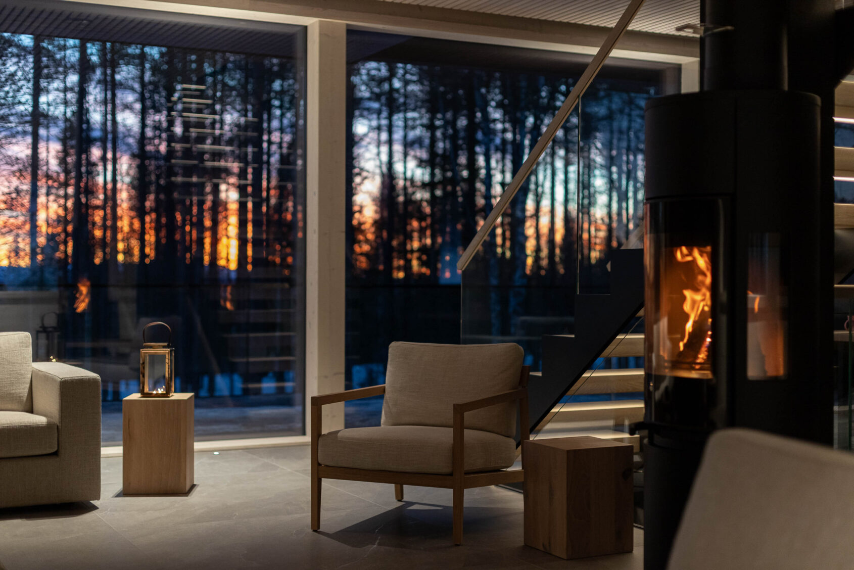 In the heart of Lapland, this luxury villa offers breathtaking views through floor-to-ceiling windows. Tieva combines striking modern design with a moody yet refreshing elegance. Clean lines, rich textures, and soft lighting create a calm, contemporary ambience that feels both refined and inviting.